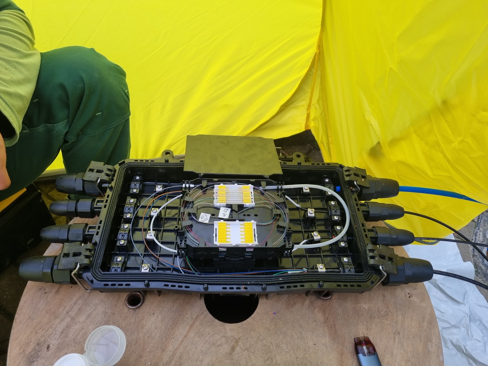 Odborně zajišťujeme instalace a opravy optických sítí, včetně zafukování kabelů, precizního svařování optických vláken a detailního kontrolního měření.